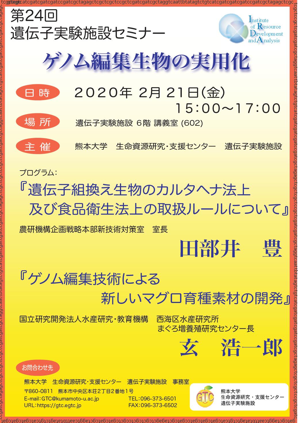 第24回遺伝子実験施設セミナー「ゲノム編集生物の実用化」を開催します
