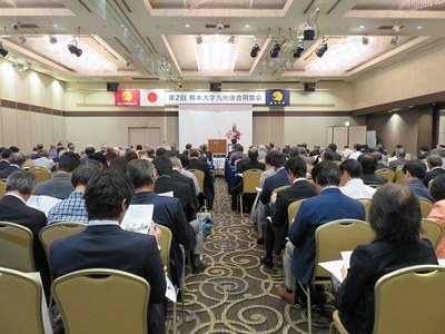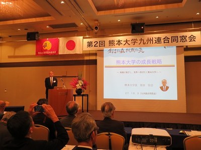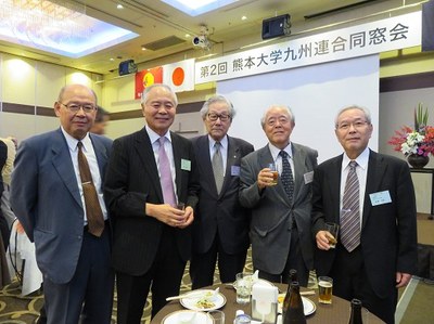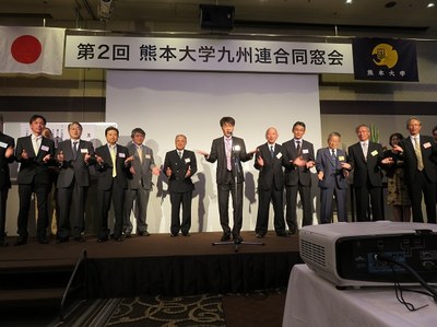 「第2回熊本大学九州連合同窓会」が、平成27年10月3日(土)ホテルセントラーザ博多において、原田信志熊本大学長(昭和50年医学部卒)、各同窓会会長など熊本から来賓を招き、合計215名の参加者を得て開催されました。