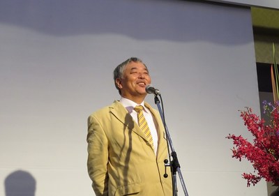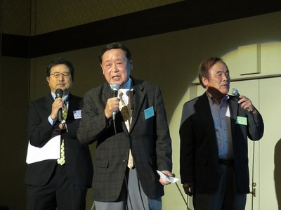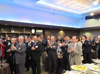 講演会終了後に開催された交流会では、まず古島幹雄熊本大学理事(副学長、昭和51年理学部卒)、今村遼平東京連合同窓会会長(理学部同窓会関東地区代表、昭和38年理学部卒)、本島昭男関西連合同窓会会長(関西武夫原会会長、昭和43年法文学部卒)からの挨拶があり、祝辞が述べられました。