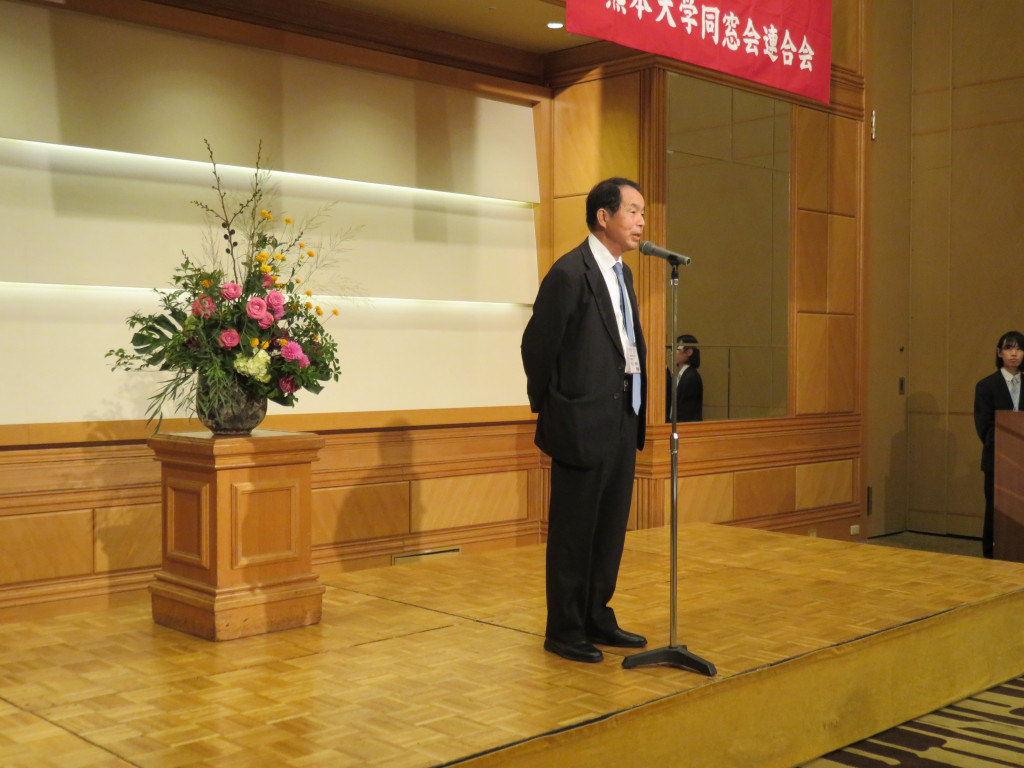 当日は、前半に総会?講演会、後半に交流会を行い、総会?講演会では、吉永誠吾会長、村田信一熊本大学同窓会連合会会長による挨拶の後、同窓会関係者、大学関係者、本同窓会開催に当たり尽力いただいた実行委員の紹介がありました。