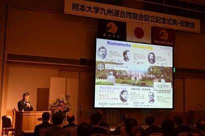 熊本大学(学長=谷口功)では、東京、関西に次ぐ新たな地域別同窓会組織として、熊本大学九州連合同窓会(会長=二塚信、昭和39年医学部卒)が設立され、平成26年4月19日(土)ホテル日航熊本(熊本市中央区)において、九州、沖縄及び山口地区(以下「九州地区」)の同窓生及び谷口功学長以下多数の大学教職員の参加(合計265名)を得て、設立記念式典?祝賀会が開催されました。