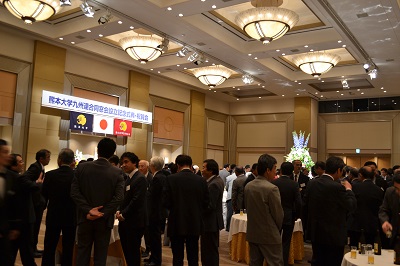 その後、九州連合同窓会の安田宏正副会長(昭和42年法文学部卒)から乾杯の発声が行われ、参加者は、久しぶりに再会した懐かしい学友や、出身学部?世代を超えた同窓生同士の交流を図り、和やかな雰囲気の中で絆を一層と強めていました。