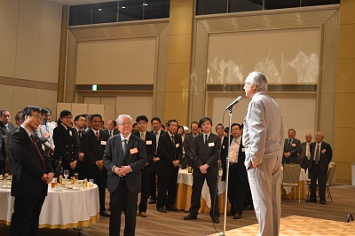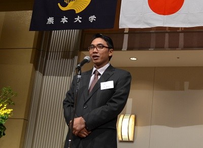 講演会終了後の祝賀会では、九州連合同窓会の先輩にあたる熊本大学東京連合同窓会の中野栄二会長(昭和42年薬学部卒)と熊本大学関西連合同窓会の西山多加志会長(昭和44年工学部卒)から挨拶が行われ、3つの連合同窓会で連携?協力し、共に母校を盛り上げていきたいとの言葉が述べられました。