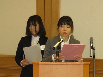 交流会の終盤では、体育会応援団の中村あゆみ氏(応援団リーダー部第44代団長、理学部2年)と応援団OBによる“巻頭言”と“五高寮歌”が披露され、参加者による合唱が高らかに会場に響き渡りました。最後に、今村 遼平副会長(昭和38年理学部卒)から挨拶があり、謝意が述 べられ、盛況のうちに会は終了となりました。
