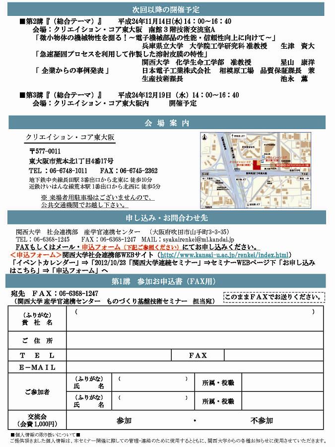 TEL:096-342-3277 FAX:096-342-3239 sangaku-renkei☆jimu.kumamoto-u.ac.jp ※メールを送信する際は、"☆"を"@"に変えてください。 http://www.kansai-u.ac.jp/renkei/event/detail.php?i=48 |
