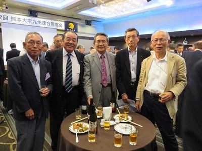 講演会終了後に開催された交流会では、まず古島幹雄熊本大学理事(副学長、昭和51年理学部卒)、今村遼平東京連合同窓会会長(理学部同窓会関東地区代表、昭和38年理学部卒)、本島昭男関西連合同窓会会長(関西武夫原会会長、昭和43年法文学部卒)からの挨拶があり、祝辞が述べられました。
