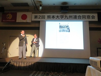 「第2回熊本大学九州連合同窓会」が、平成27年10月3日(土)ホテルセントラーザ博多において、原田信志熊本大学長(昭和50年医学部卒)、各同窓会会長など熊本から来賓を招き、合計215名の参加者を得て開催されました。
