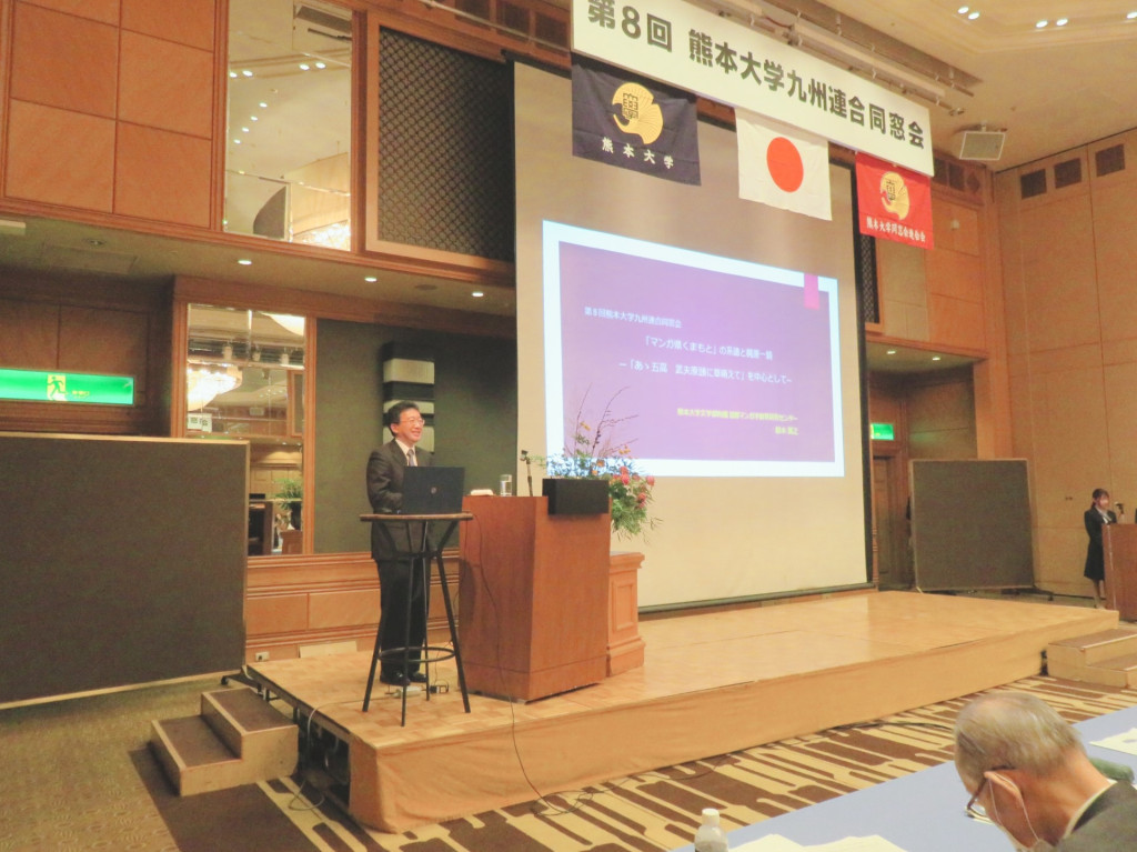 講演会では、小川久雄 学長から「変革期を迎えた熊本大学」と題した基調講演、文学部附属国際マンガ学教育研究センターの鈴木寛之准教授から「『マンガ県くまもと』の系譜と梶原一騎 ―『あゝ五高 武夫原頭に草萌えて』を中心として―」と題した特別講演が行われました。