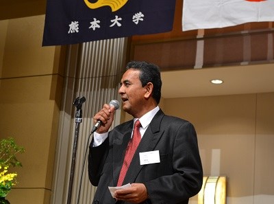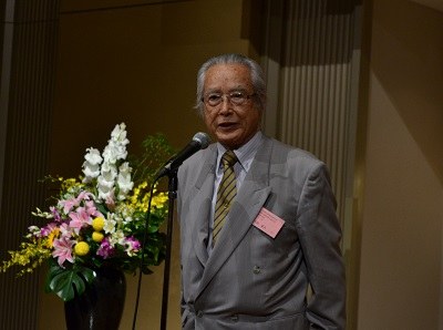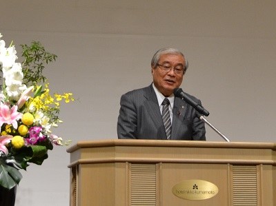 講演会終了後の祝賀会では、九州連合同窓会の先輩にあたる熊本大学東京連合同窓会の中野栄二会長(昭和42年薬学部卒)と熊本大学関西連合同窓会の西山多加志会長(昭和44年工学部卒)から挨拶が行われ、3つの連合同窓会で連携?協力し、共に母校を盛り上げていきたいとの言葉が述べられました。